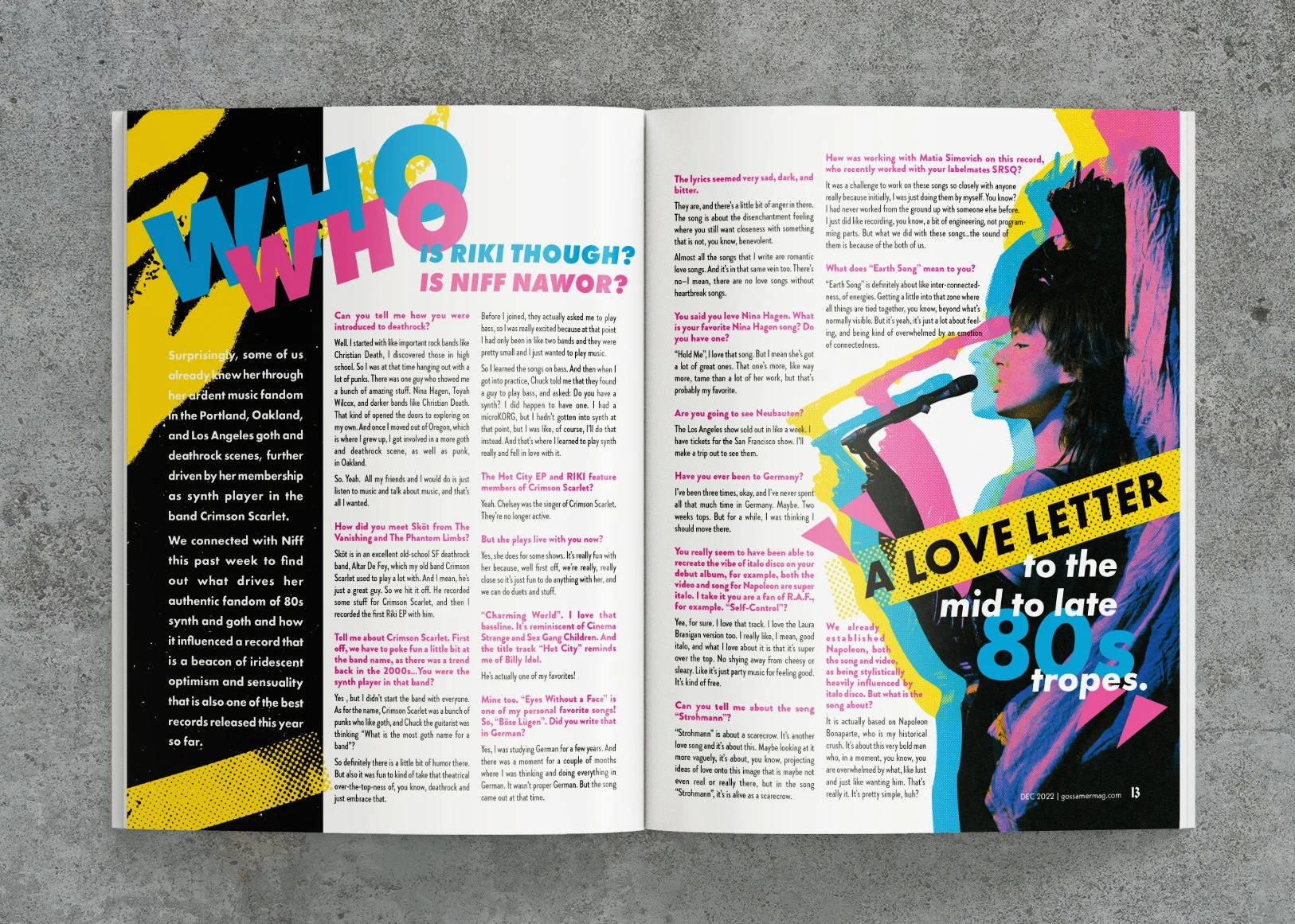 Gossamer is the magazine of the dark and mysterious. It is the magazine to keep you in the know of Gothic music, film, craft, and culture. Gossamer magazine will thrill (and possibly disturb) you through the dedication to shocking imagery, dramatic typography, and compelling layouts that will leave you waiting for the next issue.